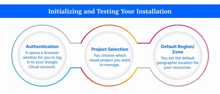 • Authentication: It opens a browser window for you to log in to your Google Cloud account.