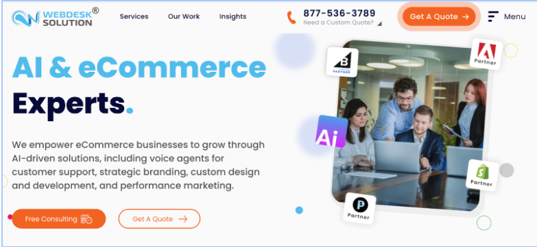 WebDesk Solution is a Full-Service eCommerce Development Company that helps brands build highly converting and scalable online stores. With over a decade of experience and more than 500 clients across North America, they offer end-to-end eCommerce solutions such as strategic consulting, custom development, migration, and ongoing support.
