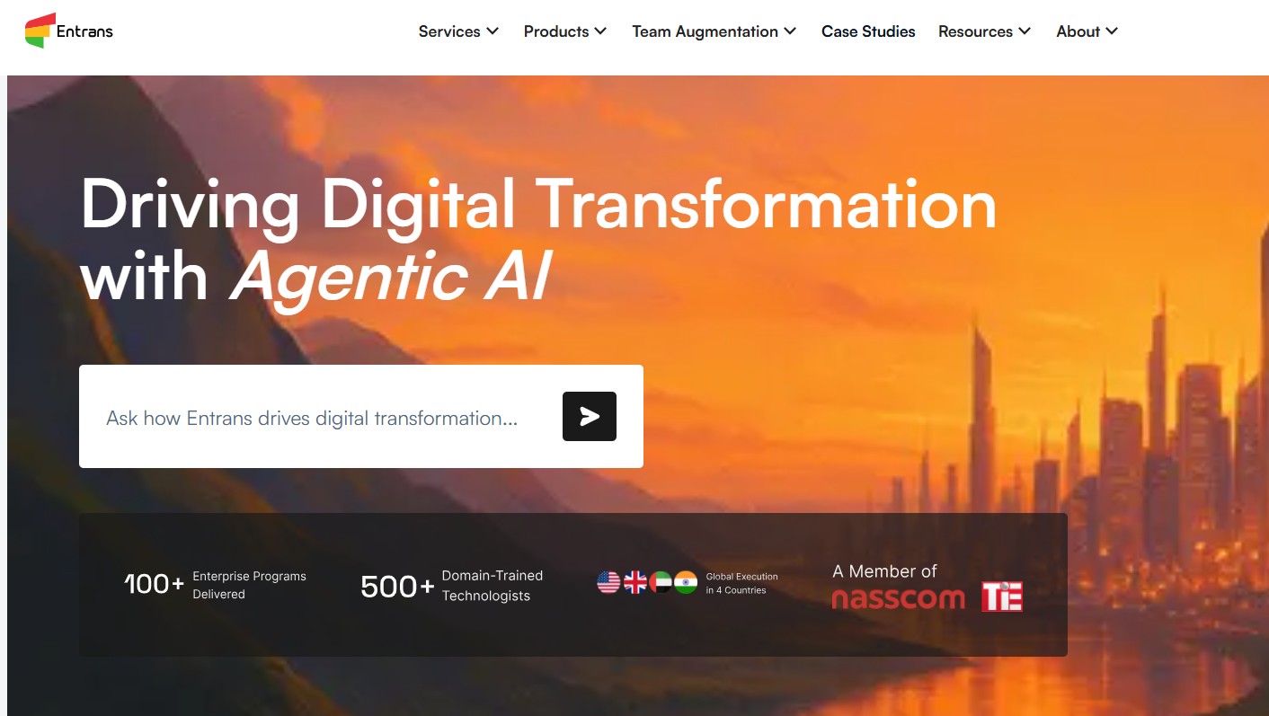 The key differentiator of Entrans is their AI-driven functionality, which embeds both Gen AI and Agentic AI frameworks by giving predictive analysis or intelligent chatbots. Main services like discovery, UI/UX design, architecture, development, testing, and ongoing support are taken care of by Entrans.