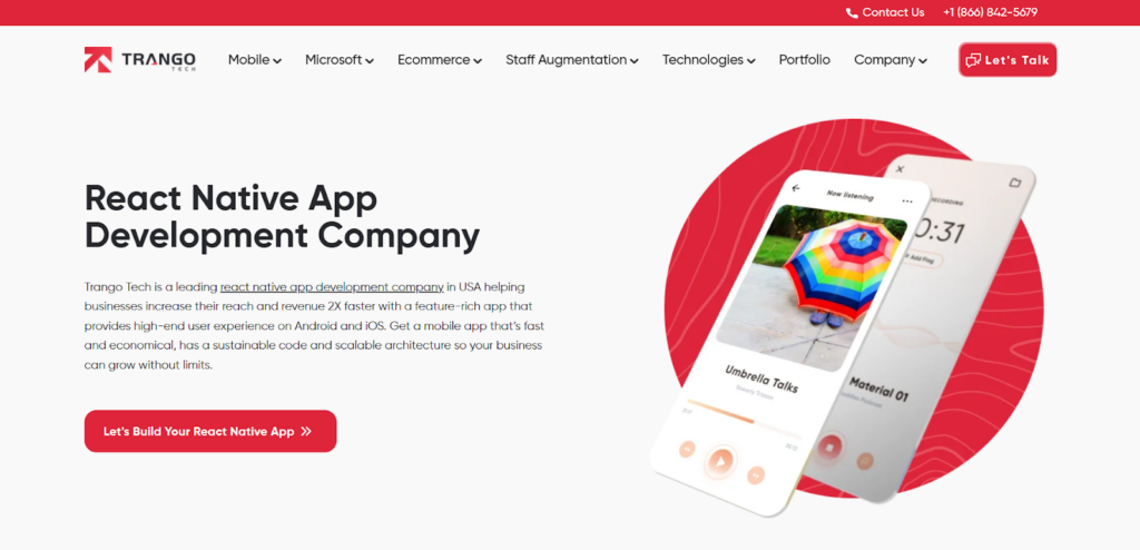 Trango Tech is a trusted react native app development company in Dubai, USA. The company excels at developing splendid mobile apps for Android and iOS. With 43+ apps delivered across diverse industries, they have a successful history in the domain of react native app development.